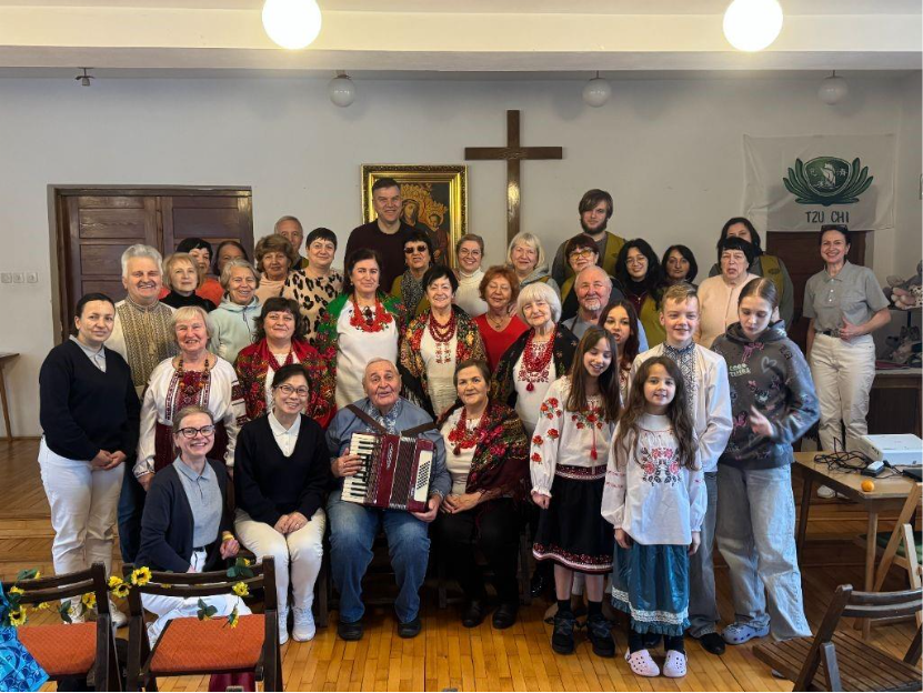 For Ukrainians displaced by war and unable to return home, the holiday season can feel especially lonely. To ease that feeling, Tzu Chi volunteers in Warsaw held a “Vegetarian Dumpling Club” gathering at the Camillian Social Welfare Mission shelter in Łomianki. Fifty-two Ukrainian and Polish residents joined, finding a taste of home and a sense of belonging in a foreign land.