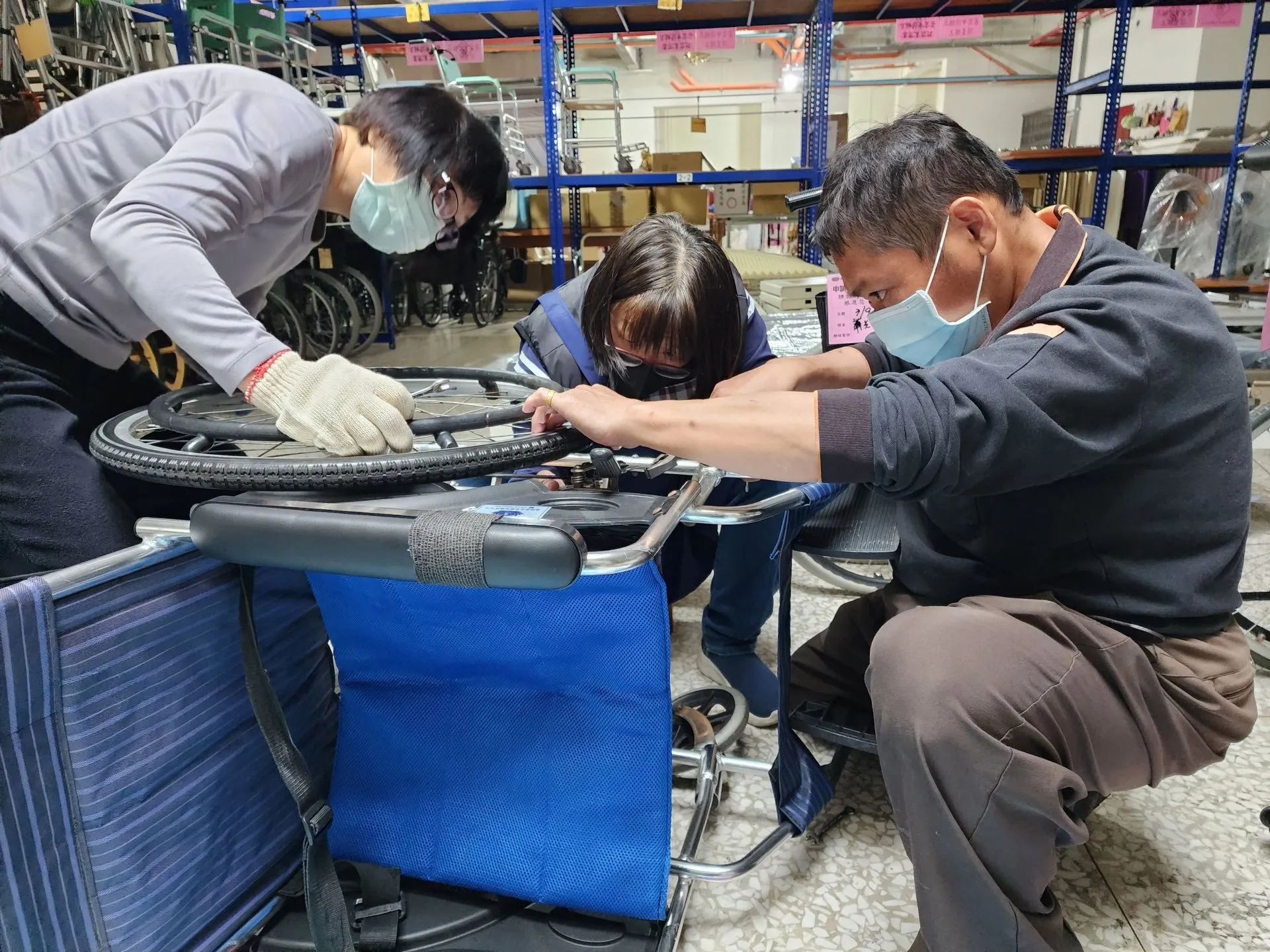 Their enthusiasm extends beyond recycling. They are often found cleaning and repairing devices, and sometimes accompany volunteers to deliver hospital beds and wheelchairs to families. During one delivery, when a volunteer accidentally injured themselves, the boys immediately stepped forward to help, taking on the heavy lifting. Their thoughtfulness and composure impressed everyone. Volunteer Kuan-Hui Li (李冠慧) shared with a smile, "Whatever tools are needed, they can make them themselves. For example, it was difficult to transport assistive devices on the ramp, so they designed a handcart to easily push and transport recycled items." This resourcefulness and creativity have simplified many complex tasks, making them reliable helpers for all.