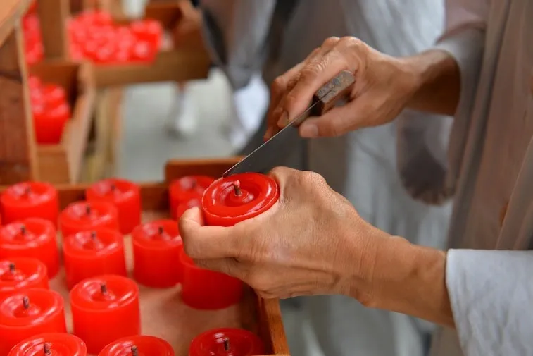 The final step in candle-making is inserting the wick. Without it, the candle is useless. In spiritual practice, when things are going smoothly, it’s easy to become complacent or arrogant. If we stray from the right path, we must start over, which is even harder. Master Cheng Yen says, “It’s harder to stop halfway than to reach the goal.” Having found this path, we must stay vigilant and keep aligning ourselves with the Dharma, lest we have to start again from the beginning.