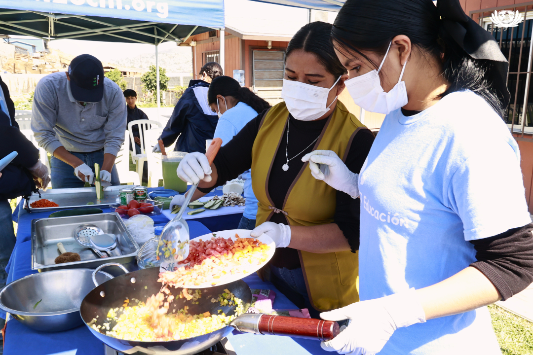 LEFT: The 10th Annual Iron Chef competition at the Tzu Chi USA Headquarters in San Dimas, California, features Tzu Chi youth from the Inland region presenting Taiwanese street-food-inspired vegetarian dishes. | Photo: Thoai Long Truong (張瑞龍) RIGHT: A mother and daughter cook side by side during a vegetarian cooking competition at the “Hope Classroom” in Tijuana, Mexico, learning how to prepare healthy plant-based dishes together. | Photo: Mandy Lo (駱淑麗)