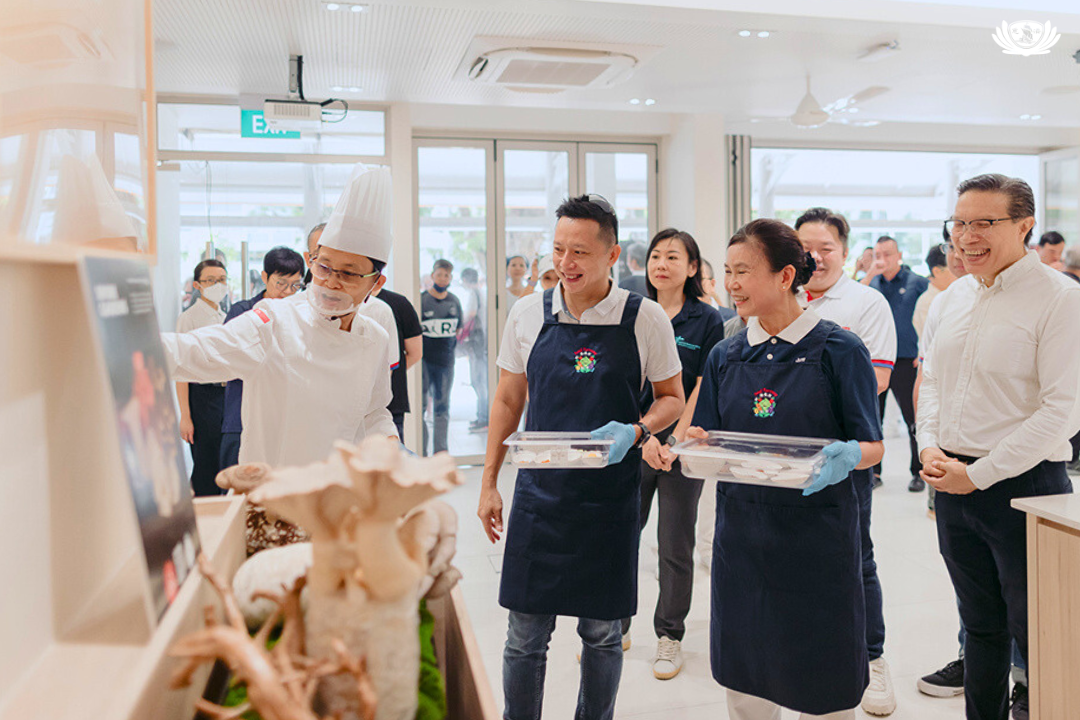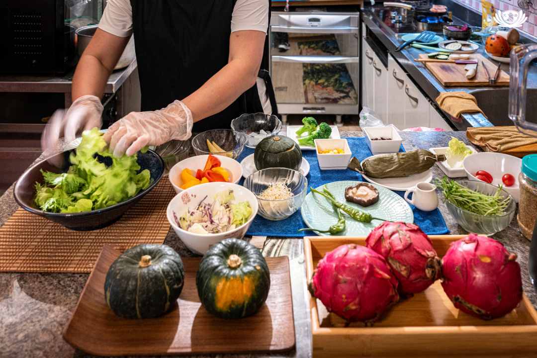LEFT: Tzu Chi’s “VO2 Vegetarian Meal Platform” in Taiwan, encourages people to “Choose VO2 instead of CO2” by ordering plant-based lunches in reusable containers, reducing both carbon emissions and single-use waste. | Photo: Yao-Hua Hsiao (蕭耀華) RIGHT: Tzu Chi Food Farmacy in Singapore, the country’s first “Food as Medicine” initiative, promotes an evidence-based Whole Food Plant-based diet through cooking classes and health talks that help patients and families apply this concept in daily life. | Photo: Tzu Chi Singapore