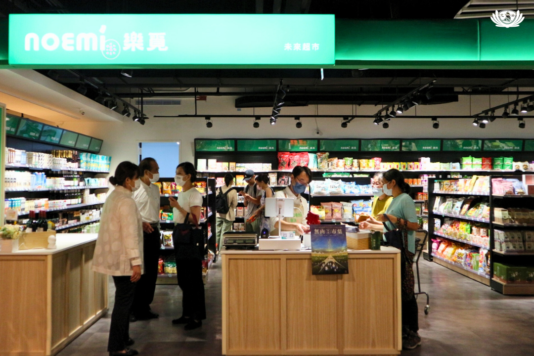 LEFT: Students from Taipei Municipal Fuxing Senior High School take part in a hands-on plant-based sandwich workshop at the cooking classroom inside Plantārium as part of the Earth Sustainability Impact Program, which helps youth connect everyday food choices with caring for the planet. | Photo: Yao-Hua Hsiao (蕭耀華) RIGHT: Shoppers browse Noemí, the natural plant-based supermarket inside Plantārium, a Tzu Chi–initiated youth co-creation space in Taipei that promotes low‑carbon plant-based living through its cooking and baking classrooms, Jing Si Books & Café, plant-based supermarket, and light vegan buffet restaurant. | Photo: Pei-Hsuan Li (李佩璇)