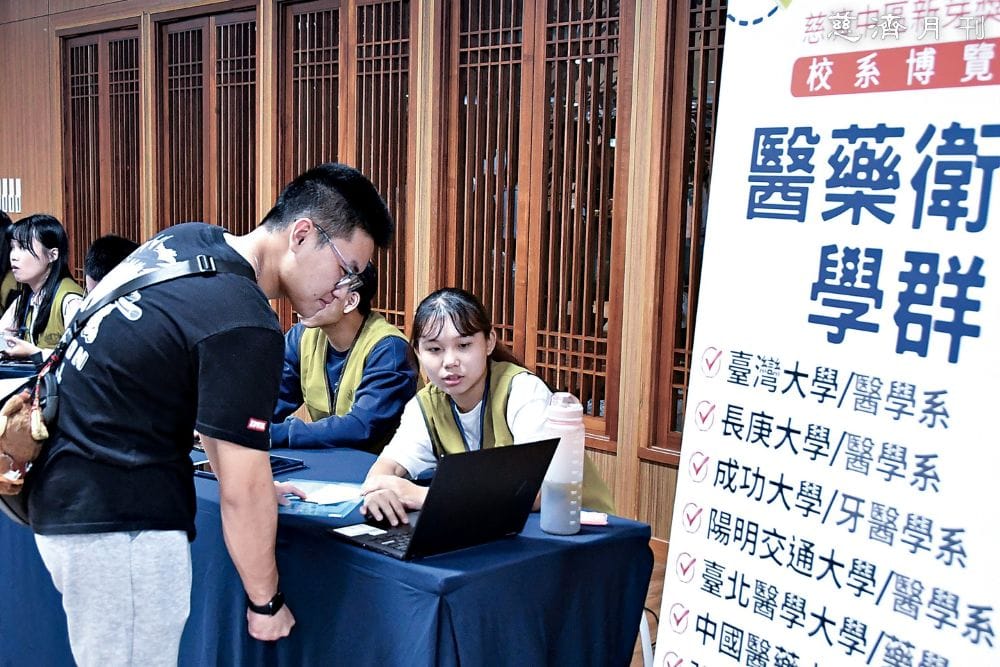 In Taichung, the November 1 ceremony at Taichung Jing Si Hall included a “Central Region New Shoots Youth Development Program School and Department Fair.” Former scholarship recipients put on volunteer vests and spoke with current high school awardees, sharing their own experiences choosing college departments and fields of study.